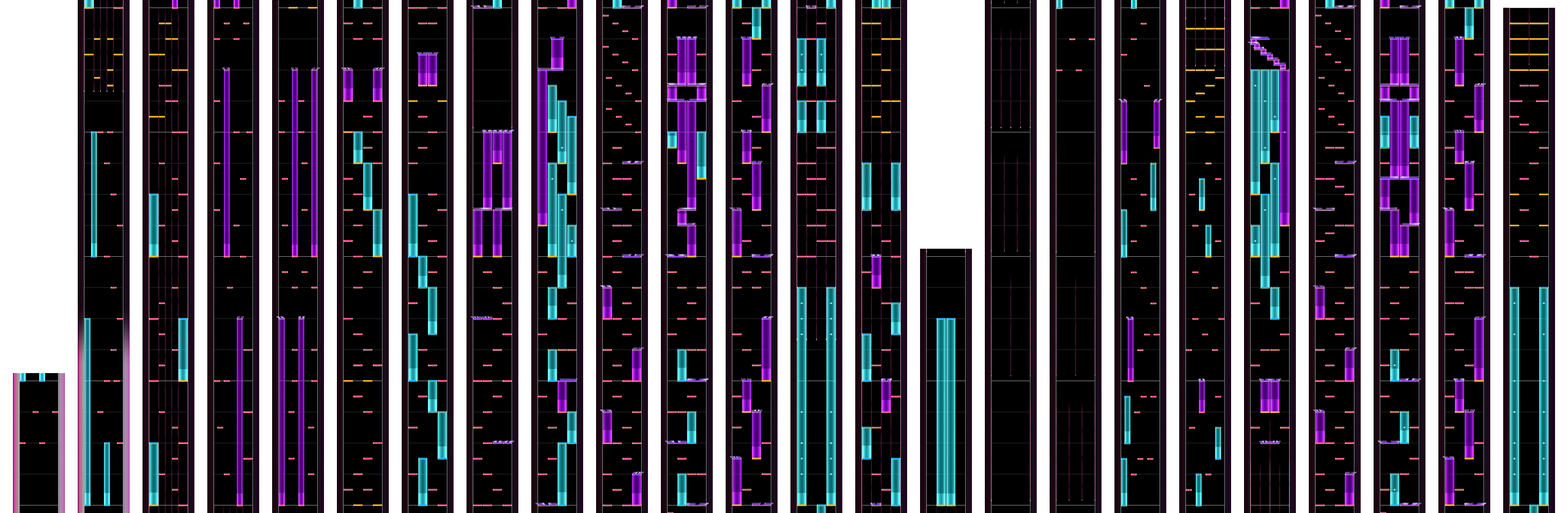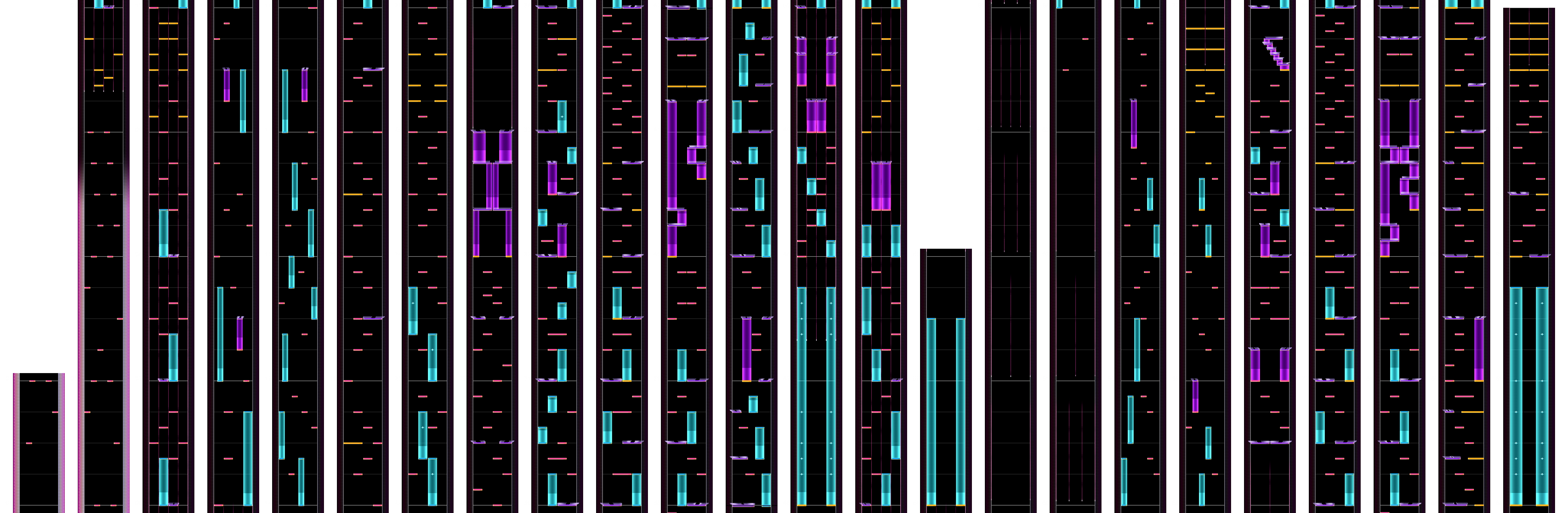 40小節目と82小節目のホールド混じりの配置がこの譜面の大きな難所の一つ。紫ホールドを人差し指で追いかけ、ほかのノーツを両手中指で取るべし。